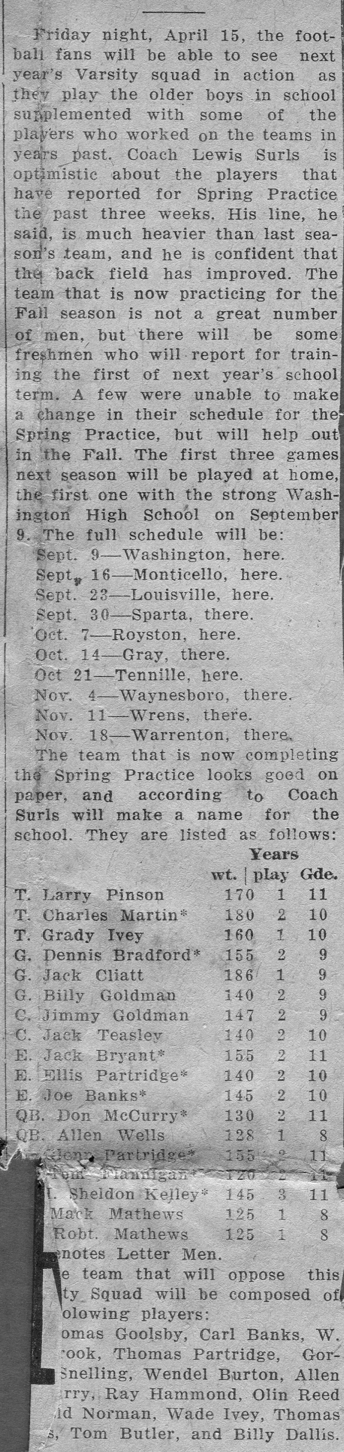 A football squad was not the first sports team fielded by Lincolnton High. A track team was formed in 1921, the year before Lincolnton first appeared on a gridiron.