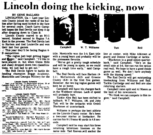 | Aug 22 7:30 | Jenkins County | W 37-6 | away | ['FFN'] |
